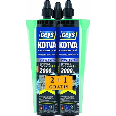 Montážní chemická kotva 300 ml VINYLESTER 2+1 GRATIS. Dvousložkový tmel, který zabezpečí extrémně odolné zakotvení do dutých, jemných nebo pevných materiálů jako je cihla,...