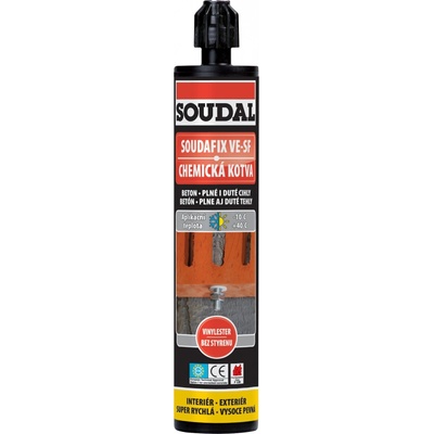 Popis Soudal Soudafix P-300 SF chemická kotva je dvousložková kotvicí hmota pro kotvení závitových svorníků, upevňovacích koncovek, armovacích tyčí, různých profilů atd. bez...
