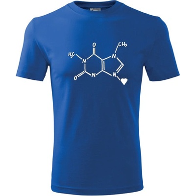 Modré tričko kofein. nabízené velikosti jsou S,M,L,XL,XXL,XXXL. Tričko je zařazeno v sekcích Dárek pro studenta chemie, . Technologie tisku: Tisk na tričko je realizován pomocí...