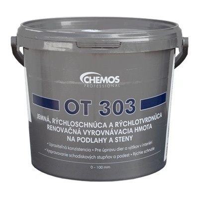 CHEMOS OT 303 od slovenského výrobce Chemos je rychleschnoucí a rychletvrdnoucí velmi jemná hmota brousitelná od nulové tloušťky do vrstvy potěru. Použití opravného tmelu...