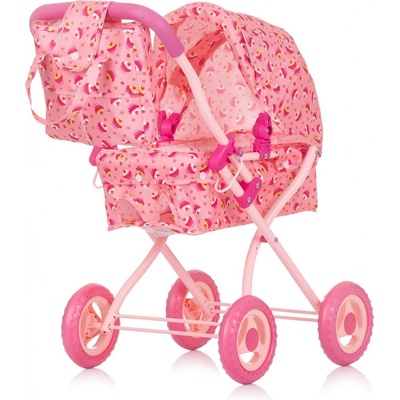 Dětský moderní kočárek, ve kterém se panenkám nebo plyšákům ihned zalíbí. Vlastnosti: super lehký a pohodlný kočárek pro panenky, nastavitelná stříška, taška se zavěšením...