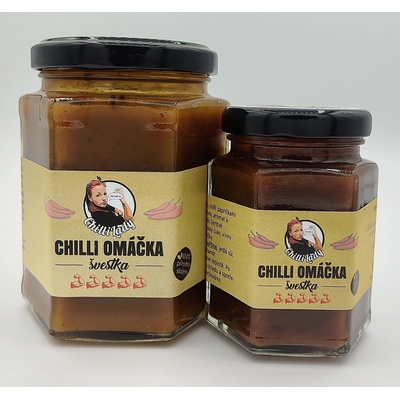 Švestková omáčka s chilli papričkami bez chemických barviv, aromat a konzervantů. Složení švestkové chilli omáčky, pálivost 5 z 5: čerstvé švestky (82%), třtinový cukr, vinný...