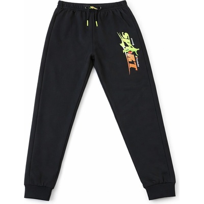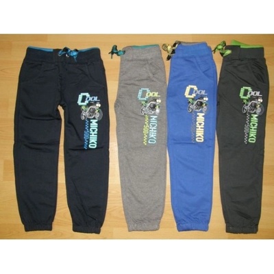 Chlapecké tepláky s obrázkem a nápisem na nohavici. V pase guma, tkanička na stažení. Funkční kapsy vpředu i vzadu. Měkká teplákovina, z rubu bez chloupku.