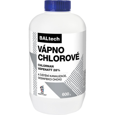 Baltech CHlorové vápno 600 g Chlorové vápno se používá k dezinfekci kapalného prostředí, 10% roztok k dezinfekci kanalizačních odpadů, atd. Chlorové vápno je určeno k desinfekci kanalizačních odpadů a potrubí, žump a také k desinfekci prostorů sloužících k chování...