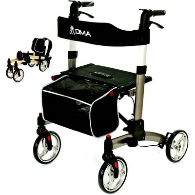 DMA chodítko 104 čtyřkolové skládací - zcela skládací odlehčený duralový rám - patentovaný skládací mechanismus - minimalistické rozměry po složení (80x40x35cm) - ideální...