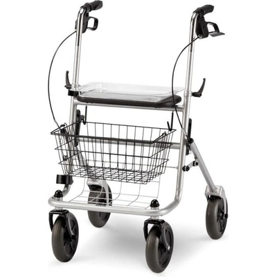 DMA Čtyřkolové chodítko 100 - stříbrné—Skládací rám se sedátkem, nastavitelná výška, brzdy