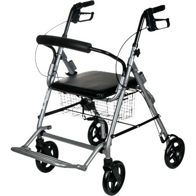 Čtyřkolové chodítko 100 WHD ve stříbrné barvě zesíleném provedení se skládacím rámem, rozšířeným sedátkem, košíkem, podnosem a držákem na hůl. Má brzdy s aretací, nastavitelná...