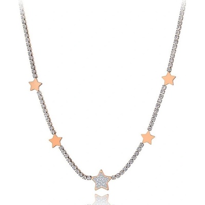 Stylový ocelový choker náhrdelník Patricia Gold, ozdoben čirými zirkony a ocelovými hvězdami, je rafinovaným doplňkem pro každou ženu. Využijte tento nadčasový kousek do...