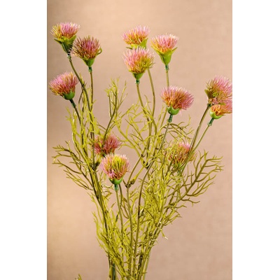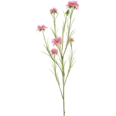 Okrasná dekorativní chrpa má 12 růžových květů. Celá je vyrobená z plastu, drží v trsu, který tvoří 3 stonky. Chrpa je vysoká 56 cm. Použitím umělého materiálu dosáhneme, že květiny drží tvar i barvu a dobře se udržují, stačí jemně otřít od prachu vlhkým hadrem. Můžete...