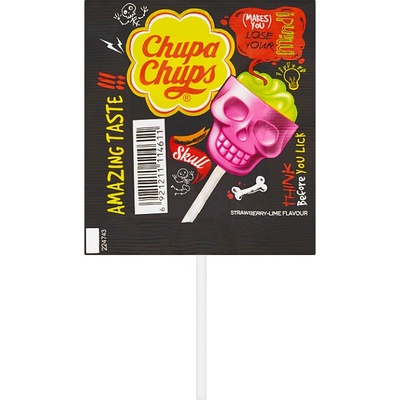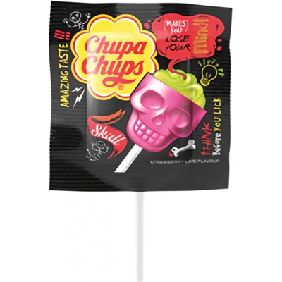 Chupa Chups Skull Lebka Lizatko karton 45 x 15g Ochutnej unikátní 3D lízátko Chupa Chups v designu lebky a úžasné kombinaci chutí jahody a limety. Užij si navíc spoustu zábavy...