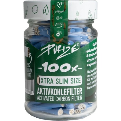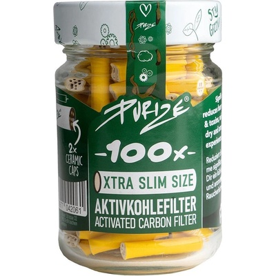 Purize XTRA Slim 5.9mm filtry Organic, sklenice 100 ks Slim filtry s aktivním uhlím PURIZE® aktivně snižují množství škodlivin vzniklých hořením a jsou vyrobeny z ekologicky...