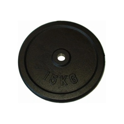 Popis - Litinový kotouč (závaží) na činky 15kg - 30mm Závaží k činkám 1 x 15 kg, s otvorem na osu o průměru 30mm.