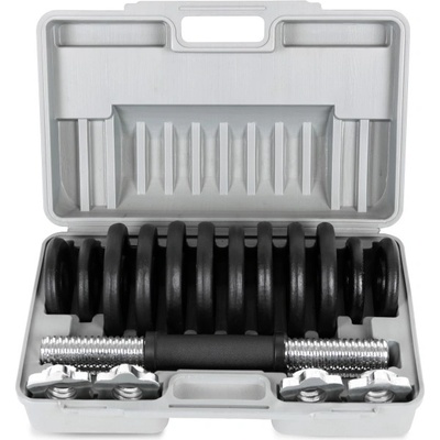 Sada jednoručních činek v kufříku. Kufřík obsahuje 2 jednoruční hřídele, sadu chromovaných kotoučů. 4 kusy matek. Díky balení v plastovém uzaviratelném kufříku, lze činky...