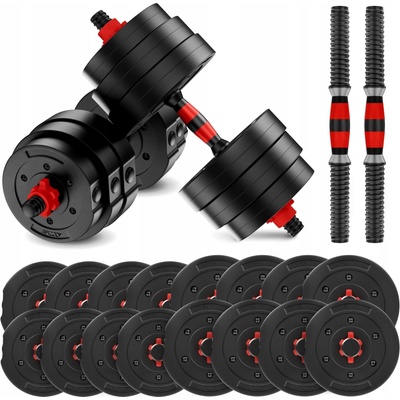 Tento set ergonomických činek má celkovou hmotnost 30 kg (2 x 15 kg). Činky mají protiskluzové plastové rukojeti, takže budete moci trénovat bez obav, že vám činky...