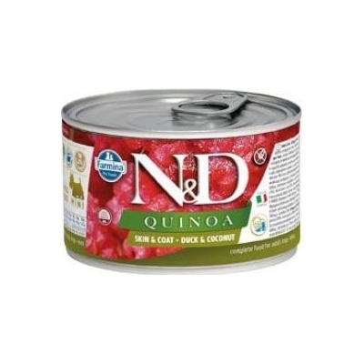 POPIS N&D Quinoa Receptura pro psy Duck & Coconut Adult Kachna, kokos. Kompletní vlhké krmivo pro dospělé psy malých plemen. Farmina N&D Quinoa Venison & Coconut je krmivo...