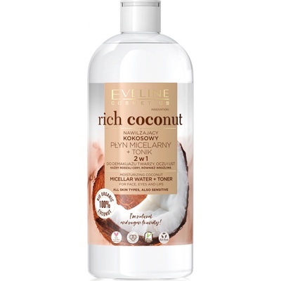 Kokosová hydratační micelární voda Hydratační micelární voda a tonikum Rich coconut Eveline cosmetics vyvinutá na základě vzácného 100% BIO kokosu dokonale odstraňuje...