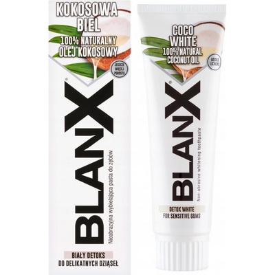 Zubní pasta BlanX White Detox Coconut pomáhá zklidnit a chránit zanícené dásně díky obsahu 100% kokosového oleje. Pasta účinně odtraňuje zubní plak a pomáhá udržet přirozený...