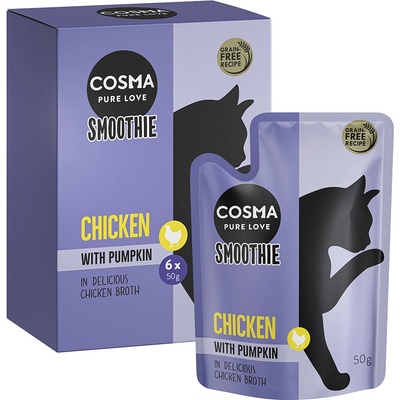 Cosma Smoothies jsou lahodnou krémovou pochoutkou pro vaši kočku. Pestré svačinky jsou ideální jako pochoutka mezi jídly a díky vysokému obsahu vývaru podporují příjem tekutin....