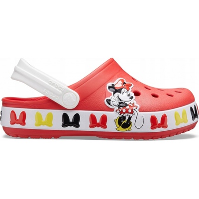 Dětské chodítka značky Crocs Model: Crocs Zábavná laboratoř Disney Minnie Mouse Band Clog Velikost: C8 24-25 Délka vložky 14,9 cm Barva: Flame Vnější podrážka z pěny...