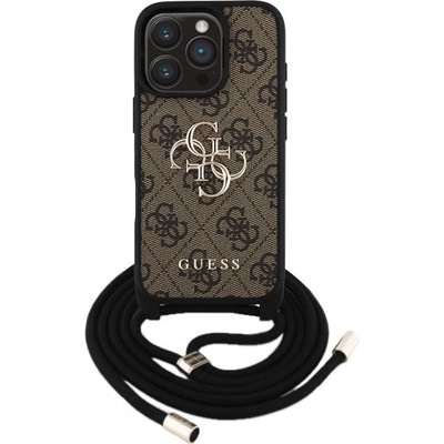 Guess 4G Metal Logo Crossbody kryt se šňůrkou pro iPhone 16 Pro - hnědý od výrobce Guess v kategorii Elektronika | Mobily, GPS | Mobilní příslušenství | Pouzdra na mobilní...