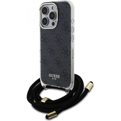 Guess IML 4G Printed Crossbody Popruh Zadní Kryt pro iPhone 16 Pro Black