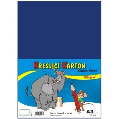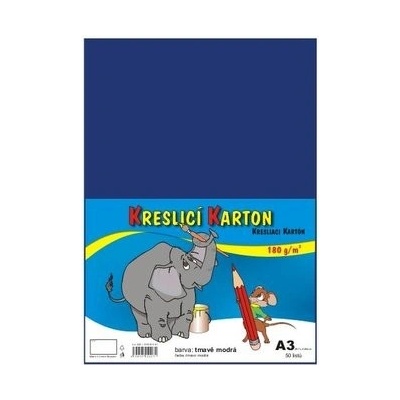 \nKreslicí karton barevný.\nFormát: A3 (420 x 297 mm)50 listů v balení Plošná hmotnost: 180 g/m2\nBarva tmavě modrá.\nBarevný kreslicí karton najde uplatnění nejen ve školách,...