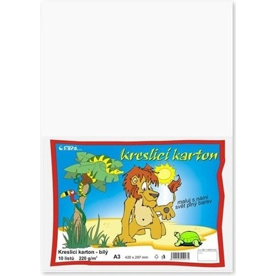 \nKreslicí karton bílý.\nFormát: A3 (420 x 297 mm) 10 listů v balení Plošná hmotnost: 220g/m2\nVšem, kteří rádi malují a vystřihují nabízíme kreslicí karton (tzv. \"čtvrtky\")....