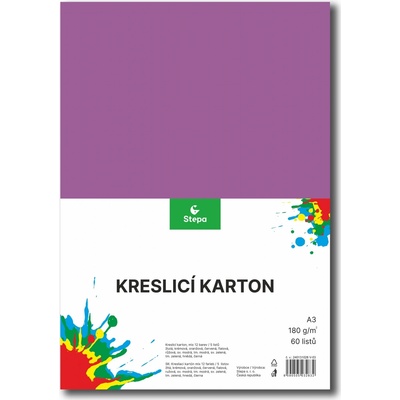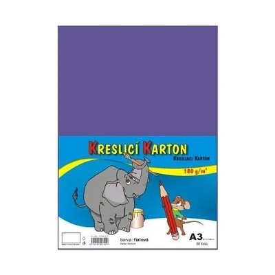 \nKreslicí karton barevný.\nFormát: A3 (420 x 297 mm)50 listů v balení Plošná hmotnost: 180 g/m2\nBarva fialová.\nBarevný kreslicí karton najde uplatnění nejen ve školách,...