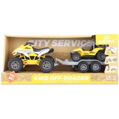 Plastová čtyřkolka s vlekem a buginou. Čtyřkolka vydává zvuky a svítí. Napájení na 3 AG13 baterie (jsou součástí balení). Rozměry balení cca 42 x 18,5 x 11,5 cm. Věk:...