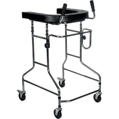 Skládací rám chodítka je vyroben z povrchově upravených duralových trubek vysoké pevnosti, doplněn čtyřmi plnými kolečky, z nichž přední dvě mají uložení v otočné vidlici a...