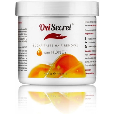 Depilační cukrová pasta OxiSecret Aloe Vera classic má výjimečně hustou texturu a při aplikaci se příliš nerozmělní, proto je tento produkt vhodný pro začátečníky. Je vhodná pro odstraňování pevných a odolných chloupků.