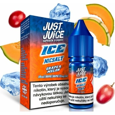 JUST JUICE ICE - GRAPE & MELON 11mg/10ml Hroznové víno, meloun a chladivá cooláda Plná a bohatá chuť černého hroznového vína, která je při potahu následována chutí lahodně...