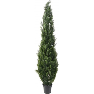 Umělý strom cypřiš v tmavě zelené je vysoký 210cm včetně plastového květináče. Propracované listy v různých odstínech zelené pro dokonalou imitaci skutečného cypřiše. Průměr...