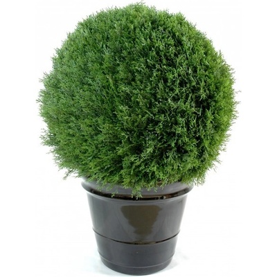 Umělý venkovní jehličnatý strom CYPŘIŠ LAWSON UV KOULE má celkovou výšku včetně kotvícího květináče 60cm a průměr koruny 50cm. Výška pod listy cca 17cm. Cypřiš venkovní má kmen...