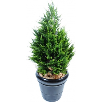 Umělý strom CYPŘIŠ JUNIPERUS má celkovou výšku včetně kotvícího květináče 105cm a na šířku 57cm. Cypřiš stálezelený má kmen ze dřeva + fibre a dva tóny zeleného jehličí z PE....