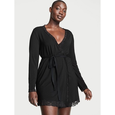 Krátký župan v černé barvě Objevte pohodlí ve viskózovém županu, který vás okouzlí svou jemností, leskem a lehkostí. Výstřih a rukávy zdobí rafinovaná krajka. Ideální při...