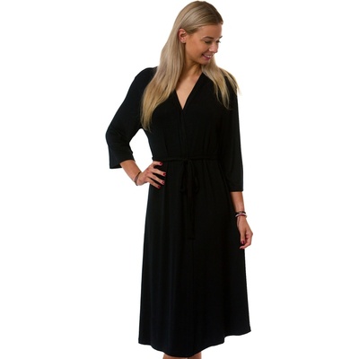 Klasický černý dámský župan z lehkého, hebkého a extra pružného materiálu. Delší střih s páskem, ideální pro plnoštíhlé ženy ve velikostech 2XL–5XL.