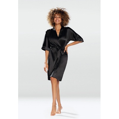 Pohodlný černý saténový župan značky DKaren 90 cm dlouhý jednoduchý střihem a nezaměnitelný půvabem a kvalitou zpracování. Lehký, dobře se nosí. Vhodný ke každé košilce značky...