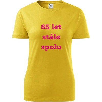 Žluté dámské tričko 65 let stále spolu. nabízené velikosti jsou S,M,L,XL,XXL. Výběr z 12ti barev. Tričko patří do kategorií Trička pro páry, Dárek k výročí svatby, . Technologie...