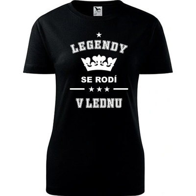 Černé dámské tričko Legendy se rodí v lednu. nabízené velikosti jsou S,M,L,XL,XXL. Výběr z 12ti barev. Tričko patří do kategorií Dárek pro ženu k 20, Dárek pro ženu k 75, Dárek...