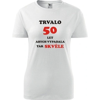 Bílé dámské tričko trvalo 50 let. nabízené velikosti jsou S,M,L,XL,XXL. Výběr z 12ti barev. Tričko patří do kategorií Dárek pro ženu k 50, Dárek pro babičku, Dárek pro manželku,...