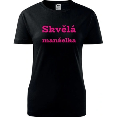 Černé dámské tričko Skvělá manželka. nabízené velikosti jsou S,M,L,XL,XXL. Tričko je zařazeno v sekcích Dárek pro manželku, , . Technologie tisku: Tisk na tričko je realizován...