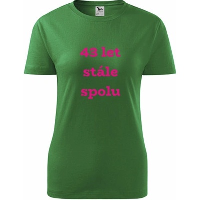 Zelené dámské tričko 43 let stále spolu. nabízené velikosti jsou S,M,L,XL,XXL. Výběr z 12ti barev. Tričko patří do kategorií Trička pro páry, Dárek k výročí svatby, ....