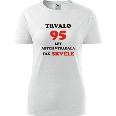 Bílé dámské tričko trvalo 95 let. nabízené velikosti jsou S,M,L,XL,XXL. Výběr z 12ti barev. Tričko patří do kategorií Dárek pro ženu k 95, Dárek pro babičku, . Technologie...