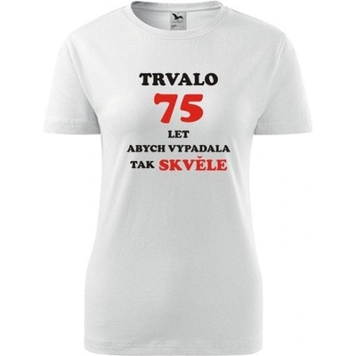 Bílé dámské tričko trvalo 75 let. nabízené velikosti jsou S,M,L,XL,XXL. Výběr z 12ti barev. Tričko patří do kategorií Dárek pro ženu k 75, Dárek pro babičku, . Technologie...