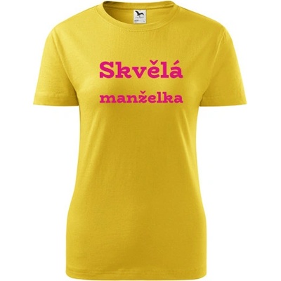 Žluté dámské tričko Skvělá manželka. nabízené velikosti jsou S,M,L,XL,XXL. Výběr z 12ti barev. Tričko patří do kategorií Dárek pro manželku, . Technologie potisku: Tisk na...