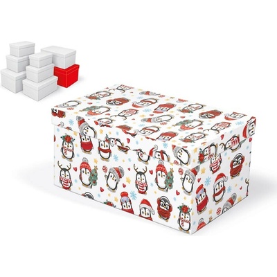 Vánoční dárková krabice o rozměrech 30 x 19 x 15 cm Dárková krabice s dětským, vánočním motivem tučňáků. Uvedená cena je za 1 ks. Materiál: 1,5 mm karton, potažený papírem s...
