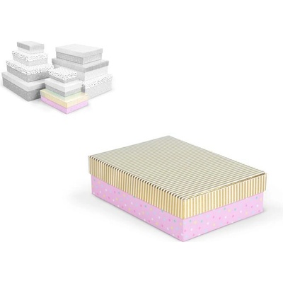 Celoroční dárková krabice o rozměrech 24,5 x 17,5 x 7 cm NÁHODNÝ MIX Dárková krabice v mixu pastelových barev s různými vzory, jako jsou puntíky, proužky nebo texturovaný...
