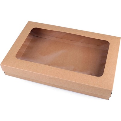 Papírová krabice má výřez ve víku z průhledné fólie. Využijete ji na balení dárků, šátků, svatební výslužky apod. Můžete si ji i dozdobit podle svého vkusu. Krabici dodáváme v...