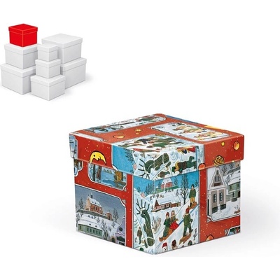 Vánoční dárková krabice s motivy Josefa Lady o rozměrech 12 x 12 x 10 cm Uvedená cena je za 1 ks. Materiál: 1,5 mm karton, potažený luxusním papírem.